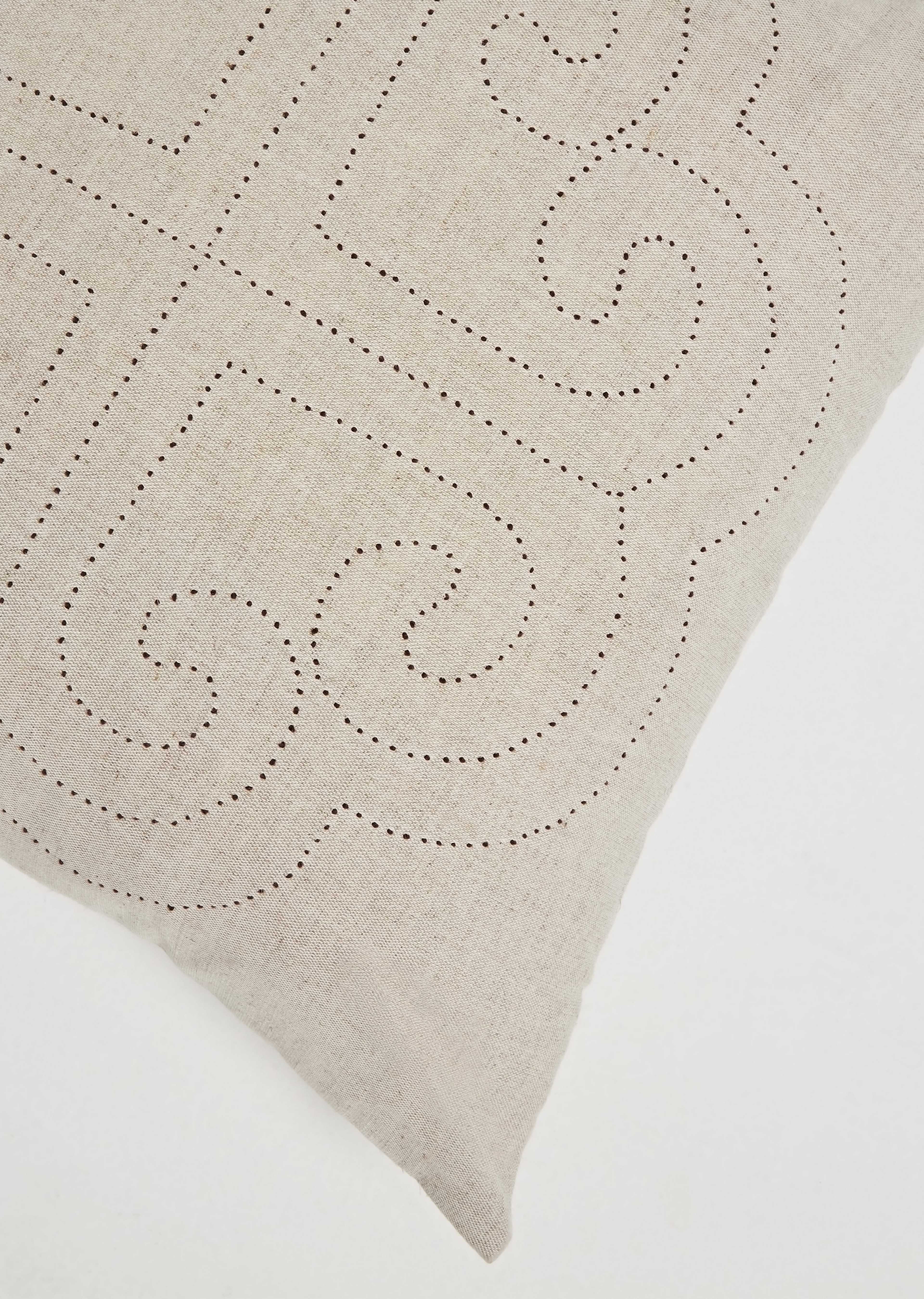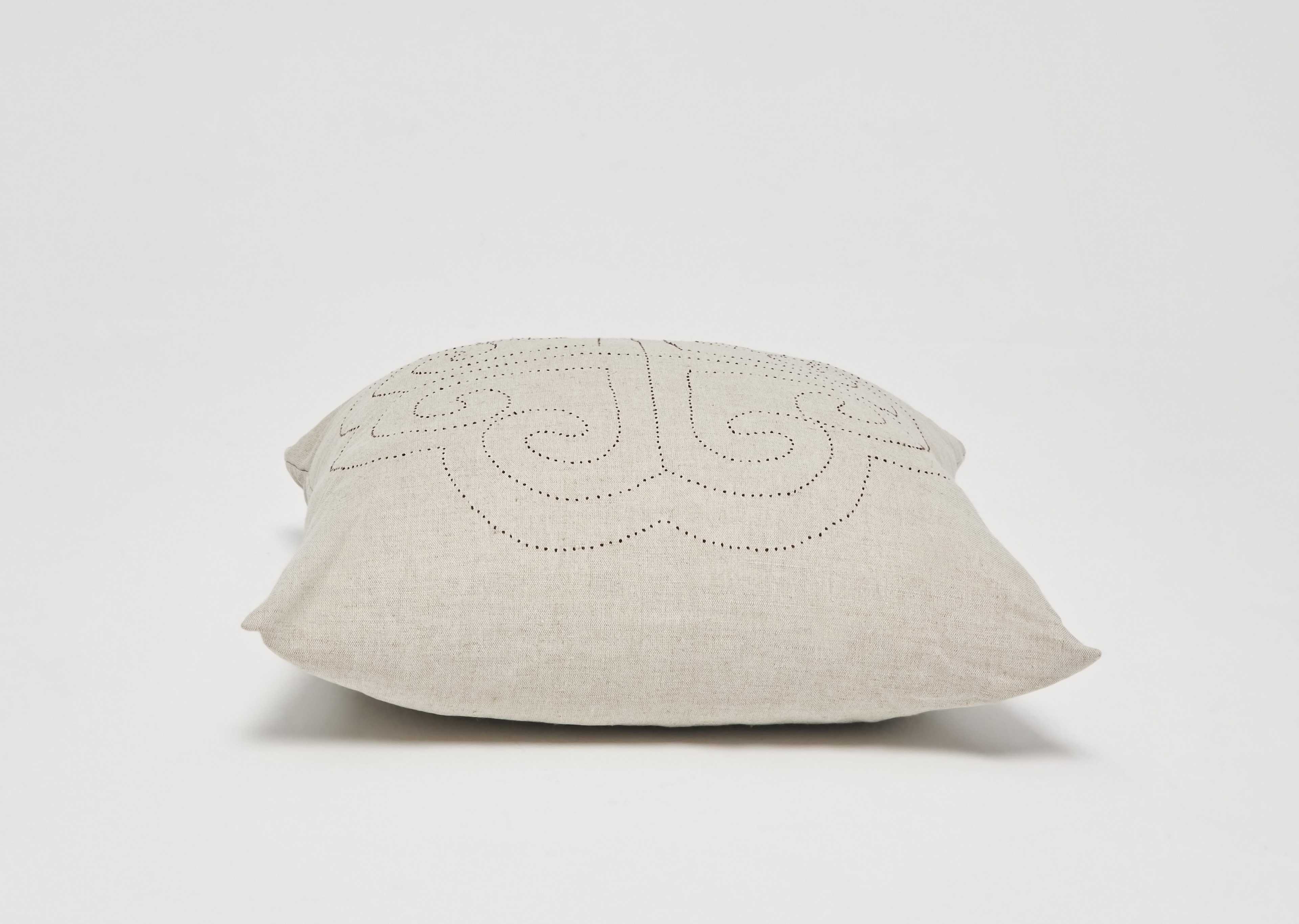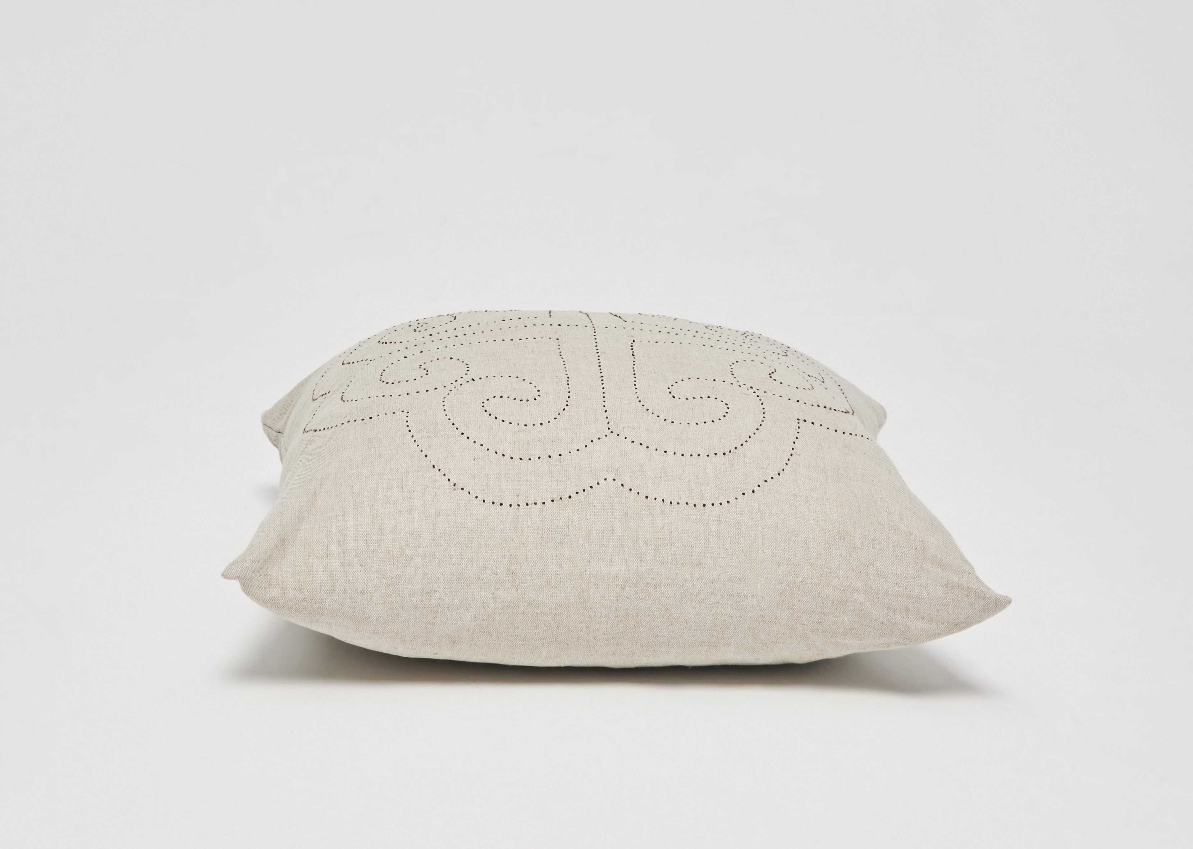 This cushion was handmade from the finest quality linen, and hand stitched to form a nomadic ornament. Inspired by the breezy spirit of nomadic life, this cushion offers a gently touch and a sense of tranquility to any space. Cover only; no stuffing