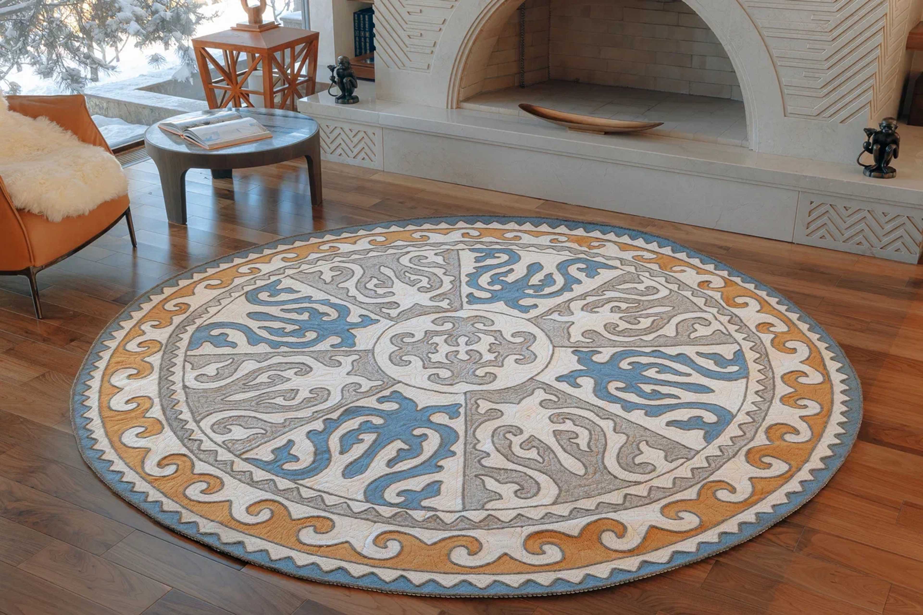 Handmade from felted wool, this round carpet embodies the spirit of nomadic culture. Inspired by traditional ornaments, it seamlessly blends cultural richness with modern elegance, offering a unique touch to any living space.