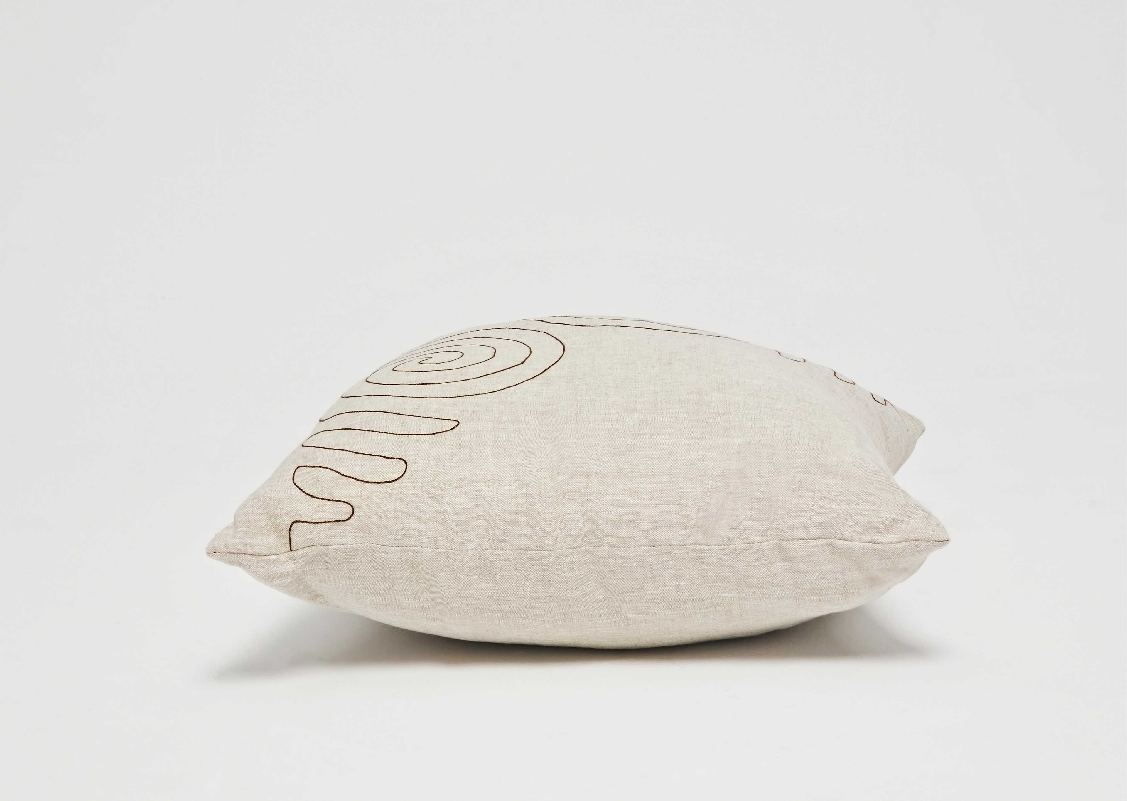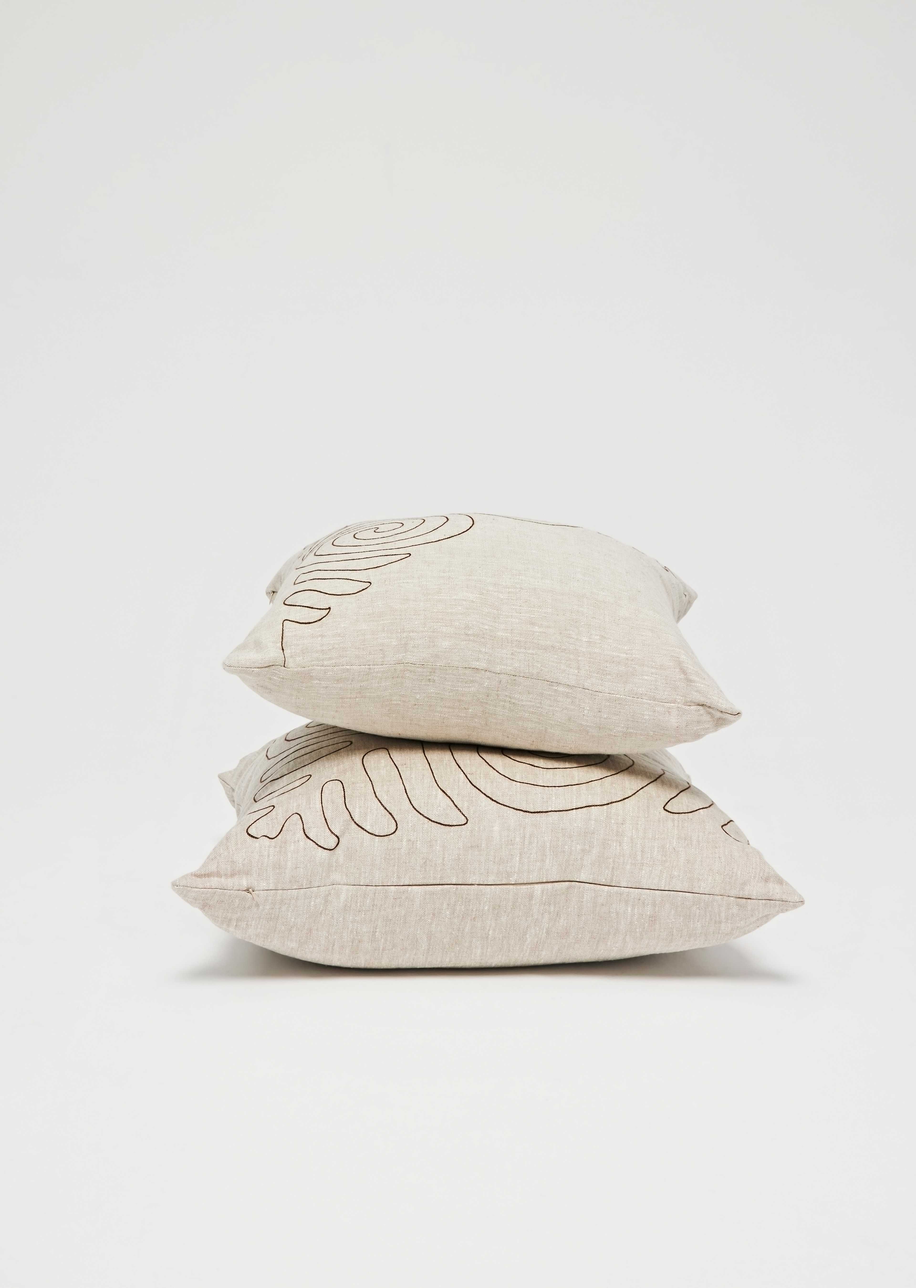 This cushion was handmade using the finest quality linen. Embroidered with a simple yet captivating nomadic motif, this cushion brings a sense of tranquility to any space. It offers a hidden zipper for a seamless and refined finish.