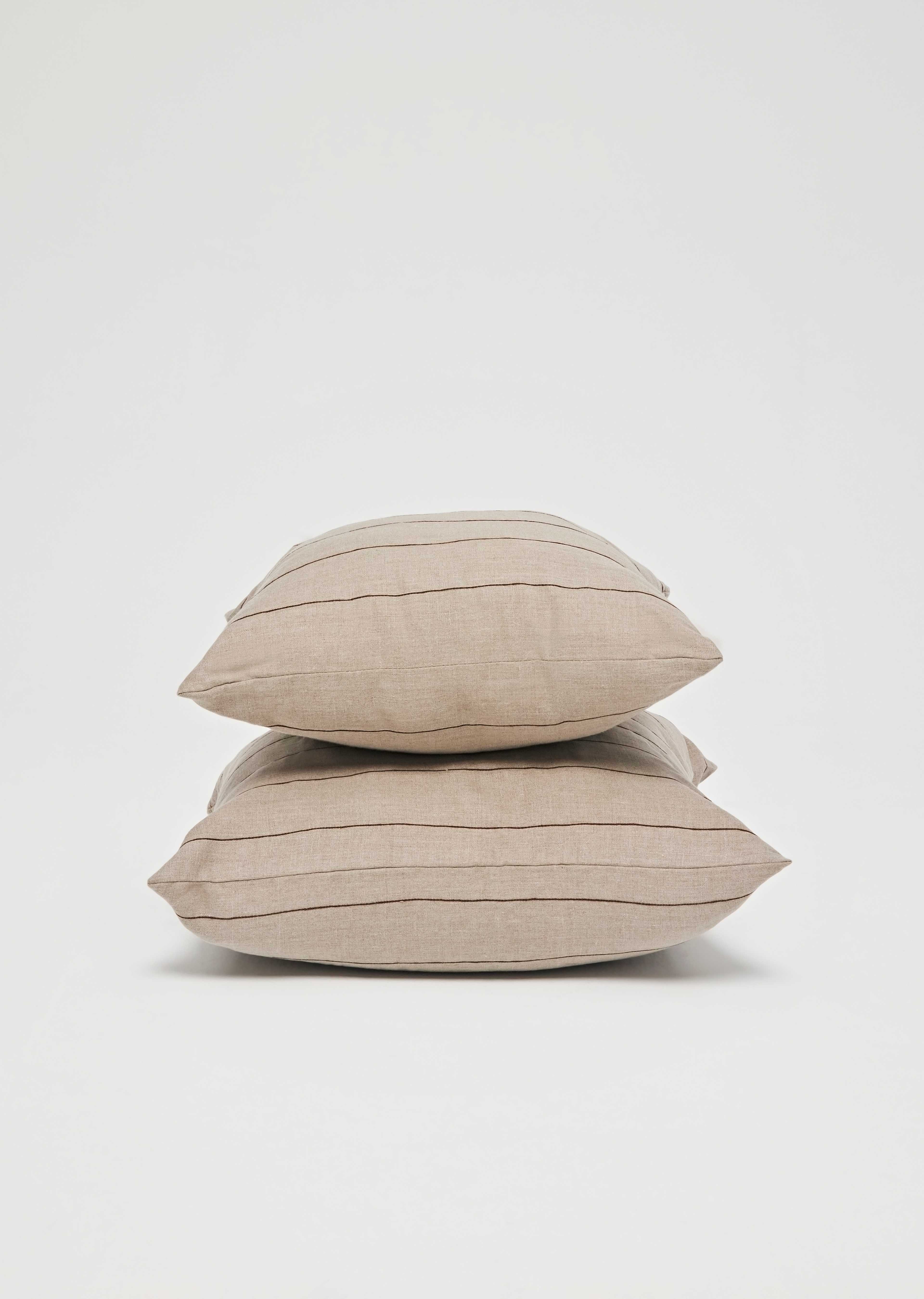This natural linen cushion was handmade from the finest quality linen, and hand stitched to form a geometric pattern. It offers a gentle touch and a sense of tranquility to any space.