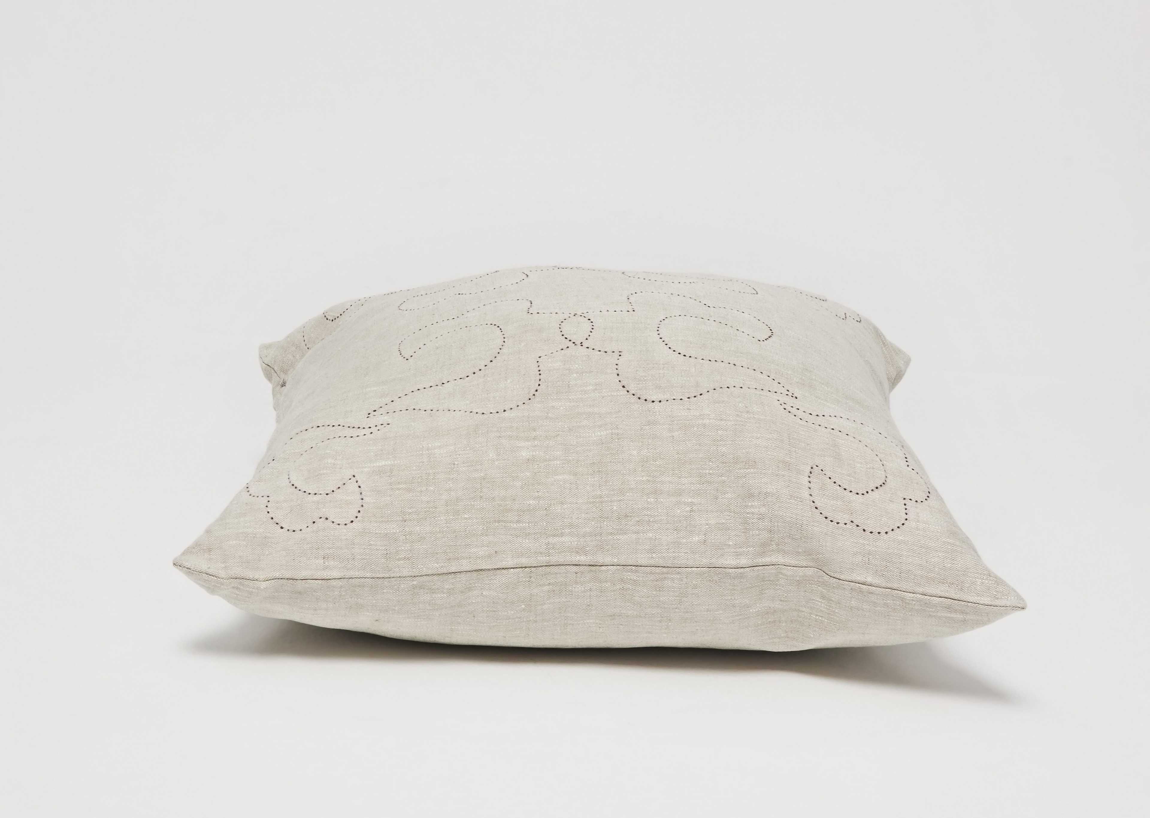 This cushion is handmade from the finest quality linen, known for its breathability and softness. Inspired by the enchanting steppe florals, it features an intricate hand-stitched detail, adding a touch of nature’s beauty. This cushion offers a hidden zipper for a seamless and refined finish.